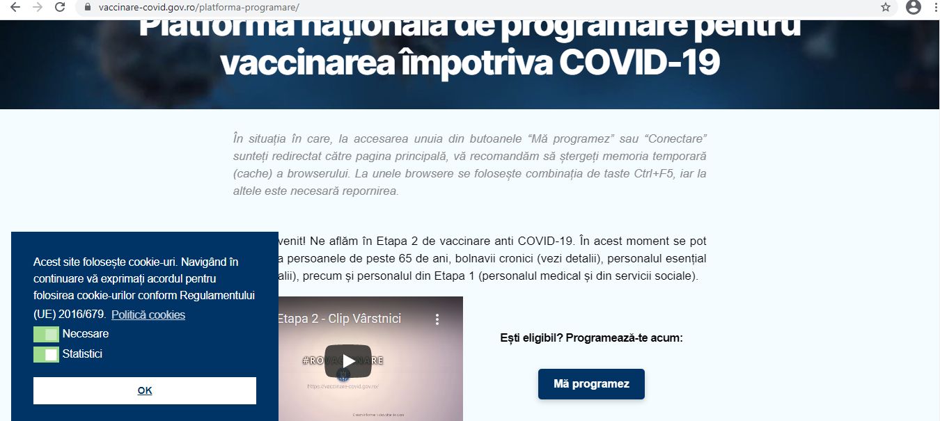 În acest moment se pot programa persoanele de peste 65 de ani, bolnavii cronici (vezi detalii), personalul esențial (vezi detalii), precum.