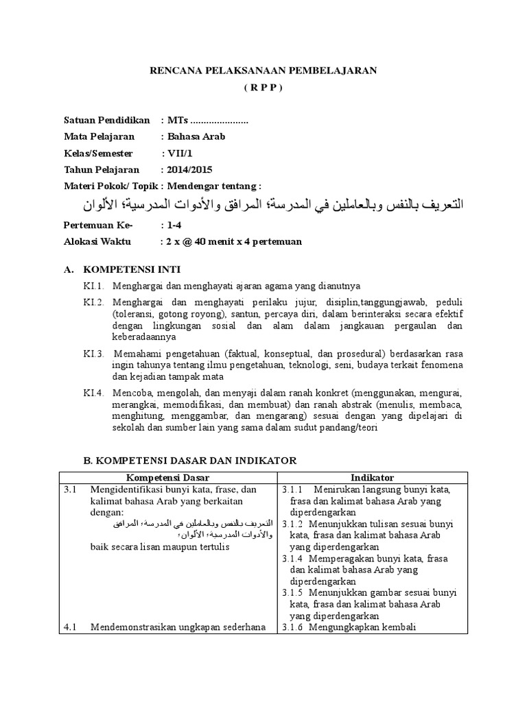 Kompetensi inti 1 (sikap spiritual). Perkembangan ilmu pengetahuan, teknologi dan komuniskasi di era global mengalami perubahan yang sangat cepat dan sulit diprediksi. Kma no 184 tahun 2019 hendak mengambil alih kma no 117 tahun 2014. Rpp k13 bahasa arab kelas 7 sebagai bahan pedoman dalam pembuatan rencana pelaksanaan pembelajaran yang baik dan benar. Rpp paipb kelas vii 25 desember 2020.